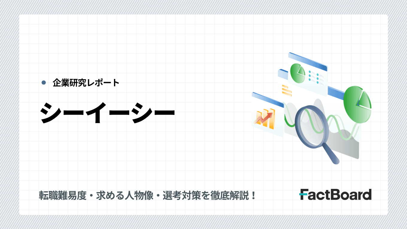 当サイトはFactBoard株式会社が運営しています。本ページは一部PRを含みます。この記事では、シーイーシーへの転職を検討している方に向けて、転職難易度や平均年収、福利厚生、中途採用(キャリア採用)の選考フロー・対策方法など、転職情報をお伝えしていきます。
