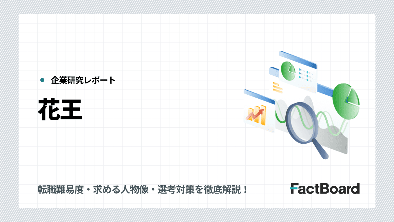 当サイトはFactBoard株式会社が運営しています。本ページは一部PRを含みます。この記事では、花王への転職を検討している方に向けて、転職難易度や平均年収、福利厚生、中途採用(キャリア採用)の選考フロー・対策方法など、転職情報をお伝えしていきます。 花王の企業研究をしたい方はもちろん、化学・消費財メーカーに興味のある方も、ぜひチェックしてみてください。