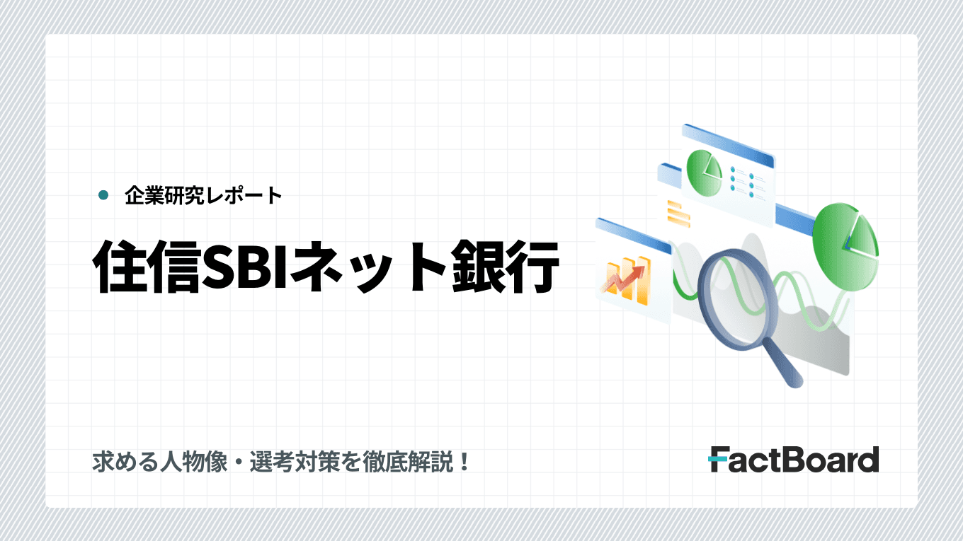 当サイトはFactBoard株式会社が運営しています。本ページは一部PRを含みます。この記事では、住信SBIネット銀行への転職を検討している方に向けて、平均年収や福利厚生、中途採用(キャリア採用)の選考フロー・対策方法など、転職情報をお伝えしていきます。住信SBIネット銀行が求める人物像や面接のポイントも解説するので、参考にしてみてください。